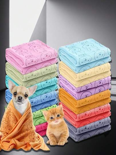 4 Pieces Cartoon Color Dog Bath Towel - Soft, Absorbent, Quick-Drying Pet Grooming Supplies(13.77in*29.52in) - Multicolor - View 1