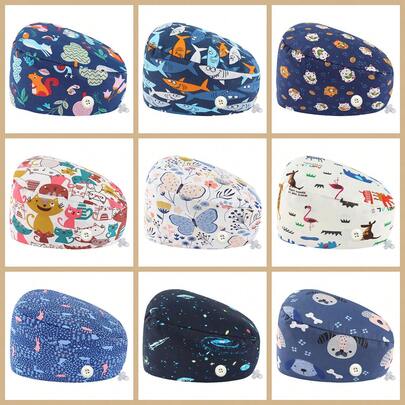 4-Season Adjustable Clip Design Nurse Cap/Surgical Cap | Fashionable Micro-Elastic Digital Print | Sweat-Absorbent & Quick-Drying, Snap Fastener | Hand Washable & Easy Care | Suitable For Medical, Beauty, Dental, Pet Use | Cute Animal Print Polyester (Polyester) Scrub Cap, Nurse Cap, Nursing Accessories, Women Surgical Cap, Long Hair Cap, Suitable For Birthday Party, All Seasons - Multicolor - View 1