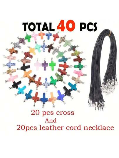 40pcs/20 Set Multicolor Natural Stone Pendants, Cross Shape Stone Charms Gemstone Pendants With Ring Clasps For Necklace Bracelet Jewelry DIY Beads, Ideal Choice For Gifts - Multicolor - View 1