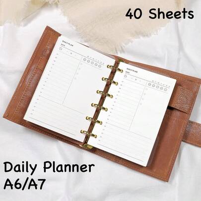 40pcs A6/A7 Size Daily Planner Refill Pages, Including To-Do List, Timeline, Date Stamp, Bedtime/Wake-Up Time, Weekday Labels, Mood Coloring, Reflection And Other Functions. - Black and White - View 1