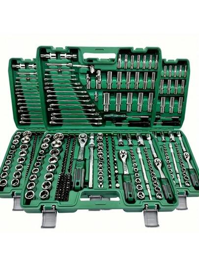 46 Pcs Ratchet Wrench Socket Set, 1/4" Drive, Chrome Vanadium Steel Handtools Kit For Auto Repair And Household Use, Metric System, Pre-Assembled, Manual Operation, With Carrying Case - Multicolor - View 1