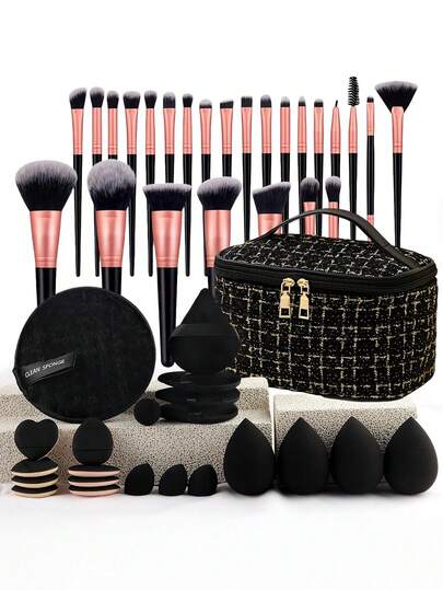 47PCS Makeup Tools Set, Makeup Powder Puff Set Including :1pc Multi-Functional Zipper Toiletry And Cosmetic Bag Waterproof+25pcs Makeup Brush Sets+4PCS Makeup Sponge+4PCS Mini Makeup Sponges+4PCS Triangle Powder Puffs+8PCS Mini Air Cushion Powder Puffs+1pc Makeup Brush Cleaning Tools,Brush Set,Makeup Brush Kit,Make Up Brush Set,Make Up Set Complete,Makeup Brush Set,Complete Makeup Kit,Brush Kit,Brushes Makeup Set,Makeup Gift Set,Set - Multicolor - View 1