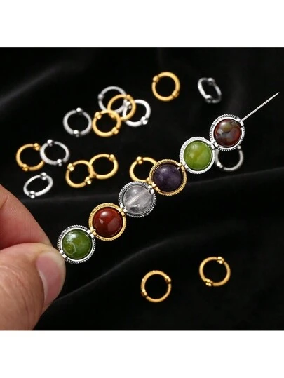 4Amazonia 50pcs/Set Silver & Gold Oval Frame Connector Beads, Jewelry Making Supplies - Multicolor - View 11