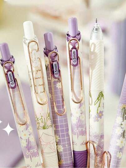 4PCS Gel Ink Pens Flower Retractable Pens 0.5mm Black Ink Gel Pens Women Girls Cute Aesthetic Pens Office School Pens, Office & School Supplies - Multicolor - View 11