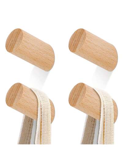 4PCS Wooden Wall Hooks, Coat Hooks, Wooden Hooks For Hanging On The Wall, Hat Hangers On The Wall, Towel Hooks For Bathroom, Bedroom, Living Room, Kitchen, With 4 Nails - Yellow - View 11