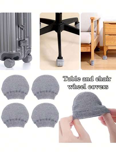 4Pcs Elastic Suitcase Wheel Protection Cover Table And Chair Foot Cover, Pure Salad Bar Case Wheel Protection Cover Wear-Resistant Shock-Absorbing Anti-Skid Mute Wheel Cover Chair Cover, Suitcase Wheel Cover Table And Chair Wheel Cover Table And Chair Mute Cover Dust-Proof Wheel Cover Anti-Dust Office Chair Wheel Mute Cover, Travel Accessories Table And Chair Anti-Skid Cover - Grey - View 1
