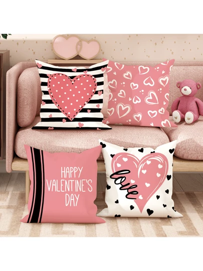4Pcs Happy Valentine'S Day Heart Striped Love Pink Black Throw Pillow Covers, Valentine'S Day Throw Pillow Covers, Velvet Decorative Cushion Cover 45*45Cm/18"*18", Suitable For Valentine'S Day Party Living Room Bedroom Sofa Bed Decoration Gift - Pink - View 7