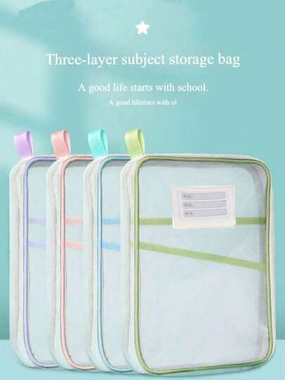 4Pcs-Transparent Stationery Storage Folder Hot Thicken Mesh Zipper File Packing A4 Size School Office Supplies Travel Storage Bags - Multicolor - View 7