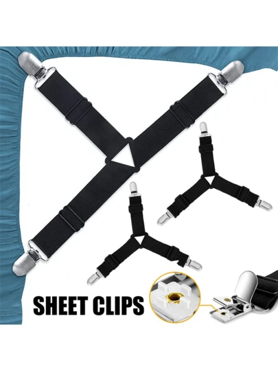 4pcs Adjustable Golden Bed Sheet Clips With Elastic Bands To Keep Sheets Tidy And Neat - Black - View 1