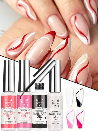 4pcs Black White Nail Art Gel Polish Kit Soak Off UV/LED Semi Permanent Varnish Gel Nail Polish Lacquer Salon Painting Designs - Multicolor - View 6