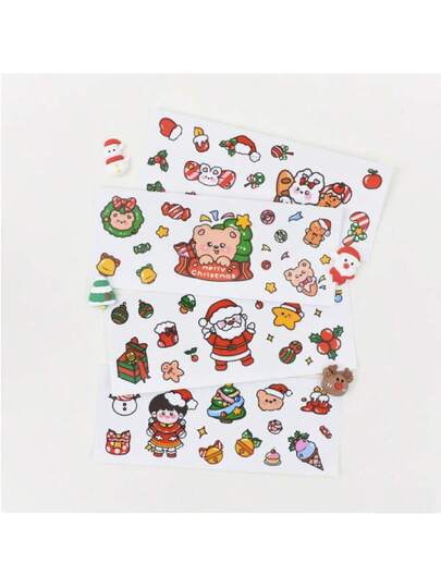 4pcs Christmas Waterproof Stickers - Cute Cartoon Holiday Decals For DIY Crafts - Adhesive Xmas Labels For Tumblers, Scrapbooking & Gift Decor - Multicolor - View 1