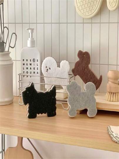 4pcs, Dishwashing Sponge, Scouring Pad, Kitchen Cleaning Sponge, Three-Layer Composite Dishwashing Sponge, Cute Dog Shape, Interesting Perfect Gift - A - View 11