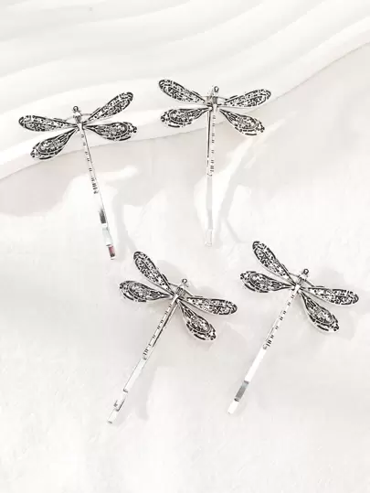 4pcs Dragonfly Decor Bobby Pin Royal Hair Clips Claw Clips Hair Barrettes, School Stuff, Hair Accessories, Head Accessories - Silver - View 1