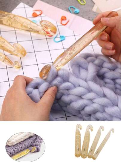 4pcs Large Crochet Hook Set, DIY Chunky Yarn Weaving Tools For Weaving Blankets, Shawls And Rugs,Carpet,Sweater-Plastic Crochet Needles Set Ergonomic Crochet Hook Kit - Multicolor - View 8