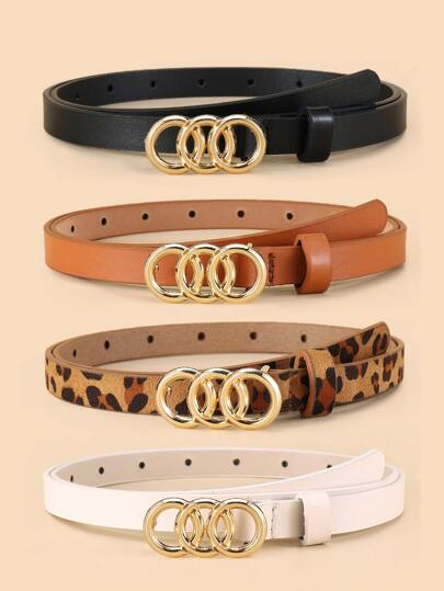 4pcs Leopard Pattern PU Buckle Belt With Hole Punch - Multicolor - View 3