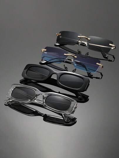 4pcs Men Small Square Rimless Vintage Classy Aesthetic Street Style Classic Delicate Fashion Glasses For Street Snap Musical Festival Business Appointment Outfits Party Decoration - Multicolor - View 1