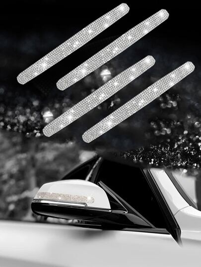 4pcs Rhinestone Decor Car Anti-collision Sticker - White - View 1