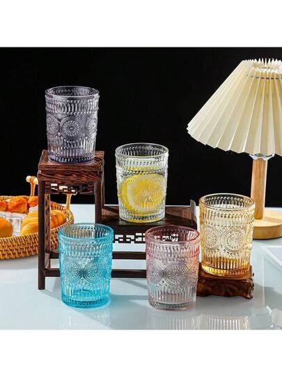 4pcs/Set Amzcku Colorful Drinking Glasses, 10oz Vintage Glass Tumblers - Suitable For Cocktails, Mixed Drinks, Whiskey, Beverages, Water, Milk And Juice, Great For Valentine's Day, Easter, Birthday, Wedding Parties, And Everyday Home Use - Multicolor - View 1