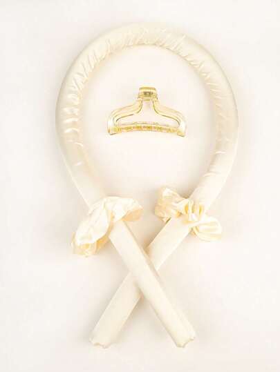 4pcs Set Of Solid Color Scrunchies, Hair Curler And Claw Hair Clips - Champagne - View 1