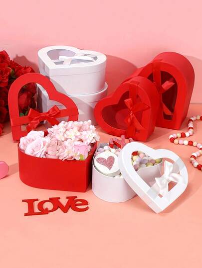 4pcs/Set PVC Heart-Shaped Gift Packaging Boxes, Valentine's Day Heart-Shaped Flower Boxes, Preserved Flower Gift Boxes, PVC Heart-Shaped Gift Box Set, Suitable For Valentine's Day, Wedding, New Year, Mother's Day, Holiday Parties, Etc. - Multicolor - View 10