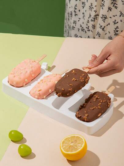 4pcs Silicone Dragon Popsicle Mold + 8pcs Small Pudding Ice Cream Mold DIY Popsicle, Ice Cream, Cake Baking Mold, Homemade - White - View 1