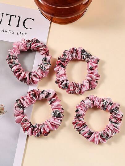 4pcs Versatile Summer Floral Print Succulent Hair Scrunchies, Suitable For Women Outdoor Decoration Hair Accessories - Multicolor - View 1