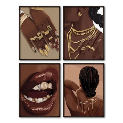 4pcs Vintage Wall Art Posters, Waterproof Canvas Posters, Paired With Golden Jewelry, Art Prints, Boho Wall Art, Art Posters, Available With Or Without Frames, Room Decor, Home Decor, Ideal Housewarming Gift, College Dorm Apartment Decor, Hotel, Home, Living Room, Bedroom, Bathroom And Office Wall Decor Gift - Multicolor - View 10