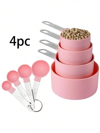 4pcs/set Stainless Steel Measuring Spoon With Graduated Plastic Measuring Cup - Pink - View 1