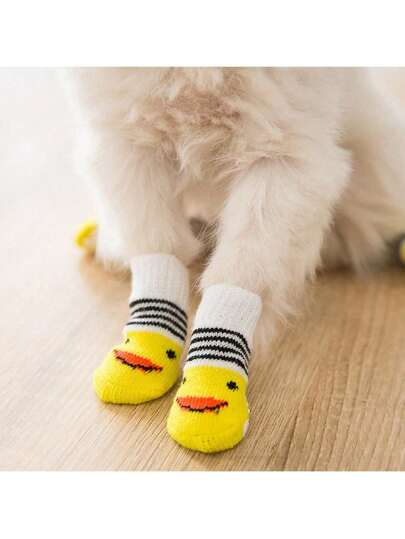 4pcs/Pack Anti-Slip Pet Dog/Cat Socks With Rubber Ducky Pattern - Yellow - View 1