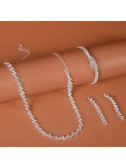 4pcs/Set Wave Water Design Necklace, Women's Versatile Dress Accessory - Silver - View 3
