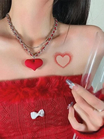 4sheets Heart Print Tattoo Sticker - Red - View 1