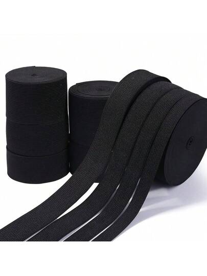 5/10 Yards/Roll Black Super Soft & Durable Elastic Band - Thick 8-Ply Woven Elastic Waistband, Suitable For DIY Crafts And Sewing Projects, Elastic Waist Belt DIY Material, Clothing Accessories, Pants/Skirt Waistband, Multiple Sizes Available - Black - View 1