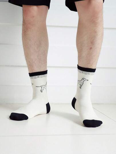 5 Pairs Men's Dog Embroidery Versatile Socks, Spring/Summer - Multicolor - View 1