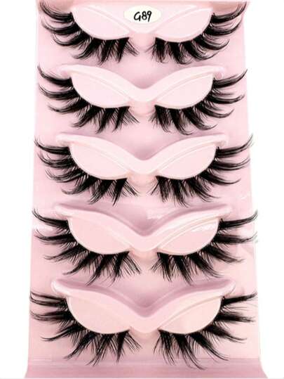 5 Pairs Of Transparent Stiletto Cat Eye Comic Lashes 3D Transparent Natural Length False Eyelashes Look Real Messy Eye Tail Lengthened False Eyelashes - Black - View 5