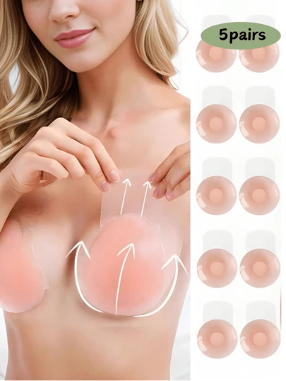 5 Pairs Reusable Silicone Breast Lift Petals, 2.56 Inches, Suitable For Small Bust (A-B Cup), With Leak-Proof Cover And Petal Protector, Strong Adhesive, Invisible Bra - Beige - View 1