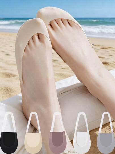 5 Pairs Women's Invisible Liner Socks, Silicone Non-Slip Thin Breathable Socks For High Heels, Soft And Comfortable, Summer - Multicolor - View 1