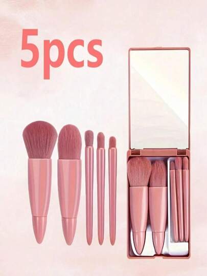 5-Piece Mini Travel Makeup Brush Set, With Mirror, Portable Makeup Set, Nylon Bristles, Suitable For Powder Blusher, Foundation Make-Up, Eye Shadow, Lipstick, Suitable For All Skin Types, No Spices,Brush Set,Makeup Brush Kit,Make Up Brush Set,Make Up Set Complete,Makeup Brush Set,Complete Makeup Kit,Brush Kit,Brushes Makeup Set,Makeup Gift Set,Set - Baby Pink - View 1