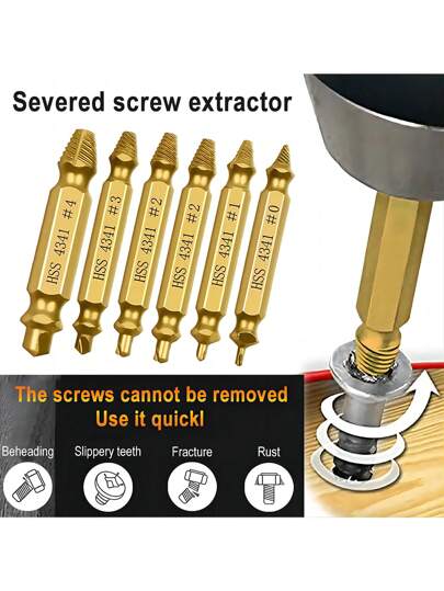 5 Pieces Broken Head Screw Extractor, Damaged Screw Extractor Bit Set, Screw Removal Bolt Remover - Easily Remove Peeled And Broken Screws! - Gold - View 1