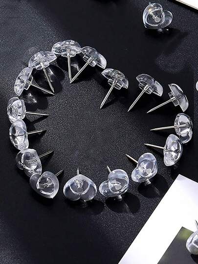 50/100/150pcs Clear Heart-Shaped Push Pins - Transparent Decorative Thumb Tacks With Sharp Tip For Cork Boards, Bulletin Boards, Maps, Posters - Office, School, Classroom Supplies - Decorative & Functional Organization , Steel Point And Plastic Head, Flat Head Thumbtacks For Photo Wall, Home Office Use, Push Pin For Cork Board, Cute Push Pin - Transparent Heart - View 11