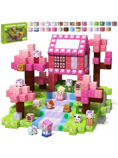 50-300pcs Magnetic Building Tiles - Mineral World Magnetic Pink Girly Flower World, Cubic Construction Toy Set, STEM Montessori Sensory Toys, Suitable For Children 3+ Years Old, Stacking Magnets, Birthday/Holiday Gift For Boys & Girls (Some Colors Random) - Multicolor - View 1