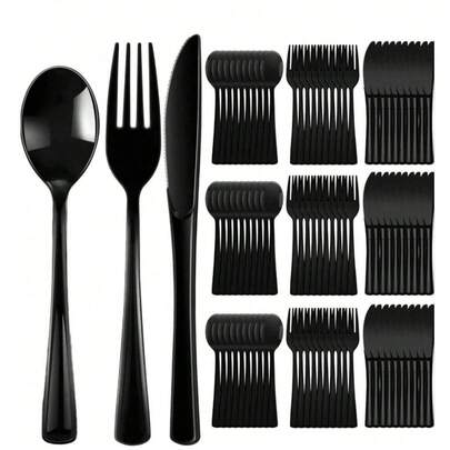 50/75/150-Piece Black Party Flatware Set - Includes 50 Forks, 25 Knives, 25 Spoons - Reusable & Washable, Perfect For Wedding Cutlery, Holiday Parties, Dinner Events, Celebrations & Christmas Decor. - Multicolor - View 1