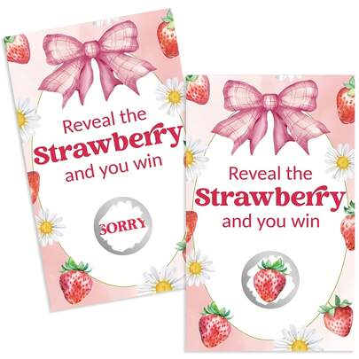50 Pcs Reveal The Strawberry Theme Scratch Off Game, Scratch Card For Strawberry Baby Shower - Pink - View 1