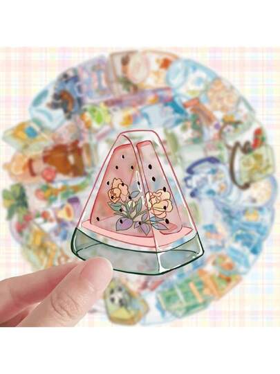 50 Transparent Stickers With Cartoons, Office Supplies Stickers, Notebooks, Planners, Phone Cases, Suitcases, Guitars, Water Bottles, School Supplies, Back To School - Cartoon Transparent 50pcs - View 1