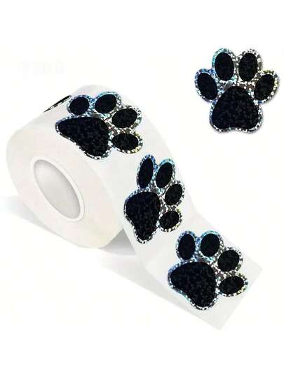 6. Cuộn 500 miếng dán hình dấu chân chó hoạt hình - Con dấu giấy bóng tự dính để trang trí, Thẻ nhãn chủ đề thú cưng dùng một lần