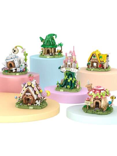 500+Pieces Of Fairy Tale Town Building House Building Blocks, Magic House, Mushroom House, House, Treehouse, Candy House, House Model Building Block Toy Set, Birthday Gift, Valentine's Day Gift, Small Component Splicing, High Difficulty, Home Decoration, Office Computer Desktop Decoration, Mixed Colors, Incompatible With - Multicolor - View 1