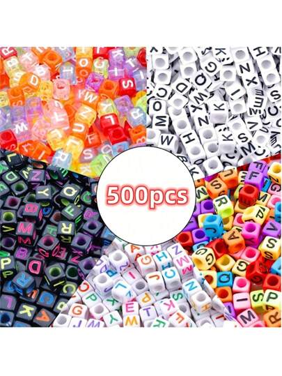 500pcs 6mm Vivid Acrylic Alphabet Beads Set - 5 Colors, Square Letter Pattern, Suitable For DIY Jewelry And Crafts - Perfect For Phone Charms And Creative Design - Multicolor - View 1