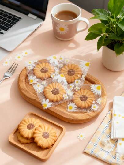 500pcs Daisy Sugar Cake Bags, Dry Mung Bean Cake Packaging Bags, Transparent Machine-Sealed Bags For Ice Skin Mooncakes And Egg Yolk Pastries,And Candy Bags, Self-Sealing Bags For Baked Nougat, Self-Sealing Bags For Candies, Personalized Packaging Bags, Self-Adhesive Bags For Baked Snacks, Food Packaging, Thanksgiving Gifts, Christmas Gifts, Halloween Gifts, Valentine's Day Gifts, New Year Gifts - Multicolor - View 1