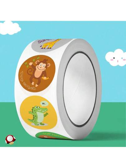 500pcs/Roll 2.5cm Cartoon Reward & Motivation Stickers Label Office Stationery Decoration Sticker Seal - Multicolor - View 1