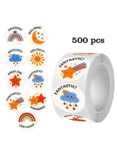 500pcs/Roll Cute Cartoon Rainbow Smiling Face Self-Adhesive Graffiti Stickers, Reward & Encouragement Sticker Decals, Gift Envelope Seals, Waterproof PVC Stickers - Multicolor - View 1
