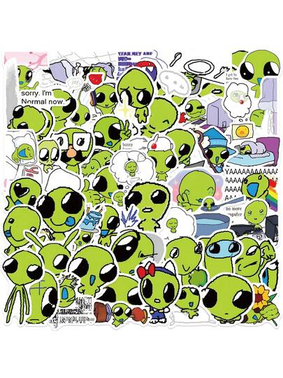 50PCS Alien Stickers Aesthetic Vinyl Stickers High Quality Stickers Decals Scrapbook,Journaling,Laptop,Bumper,Skateboard,Water Bottles,Computer,Phone Stickers Can Bring A Lot Of Fun To Your Life,The Perfect Gift For Adults - Multicolor - View 1